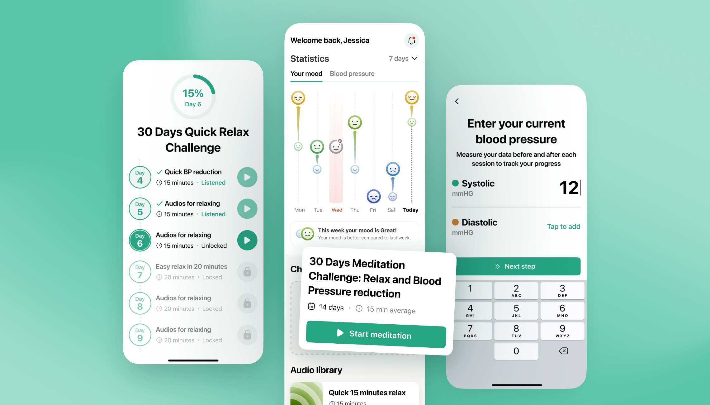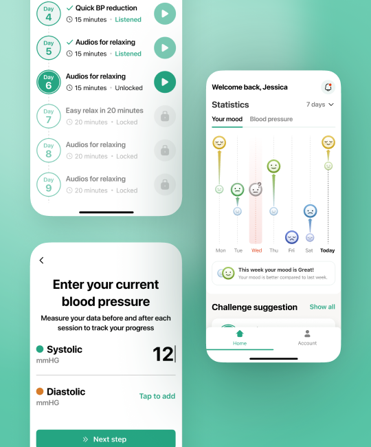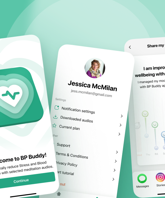 Meditation is often met with skepticism by users who value hard data over subjective sensations. Our client, an expert in mental health and wellbeing, sought to solve this by creating a platform that tracks blood pressure as a direct indicator of stress reduction.