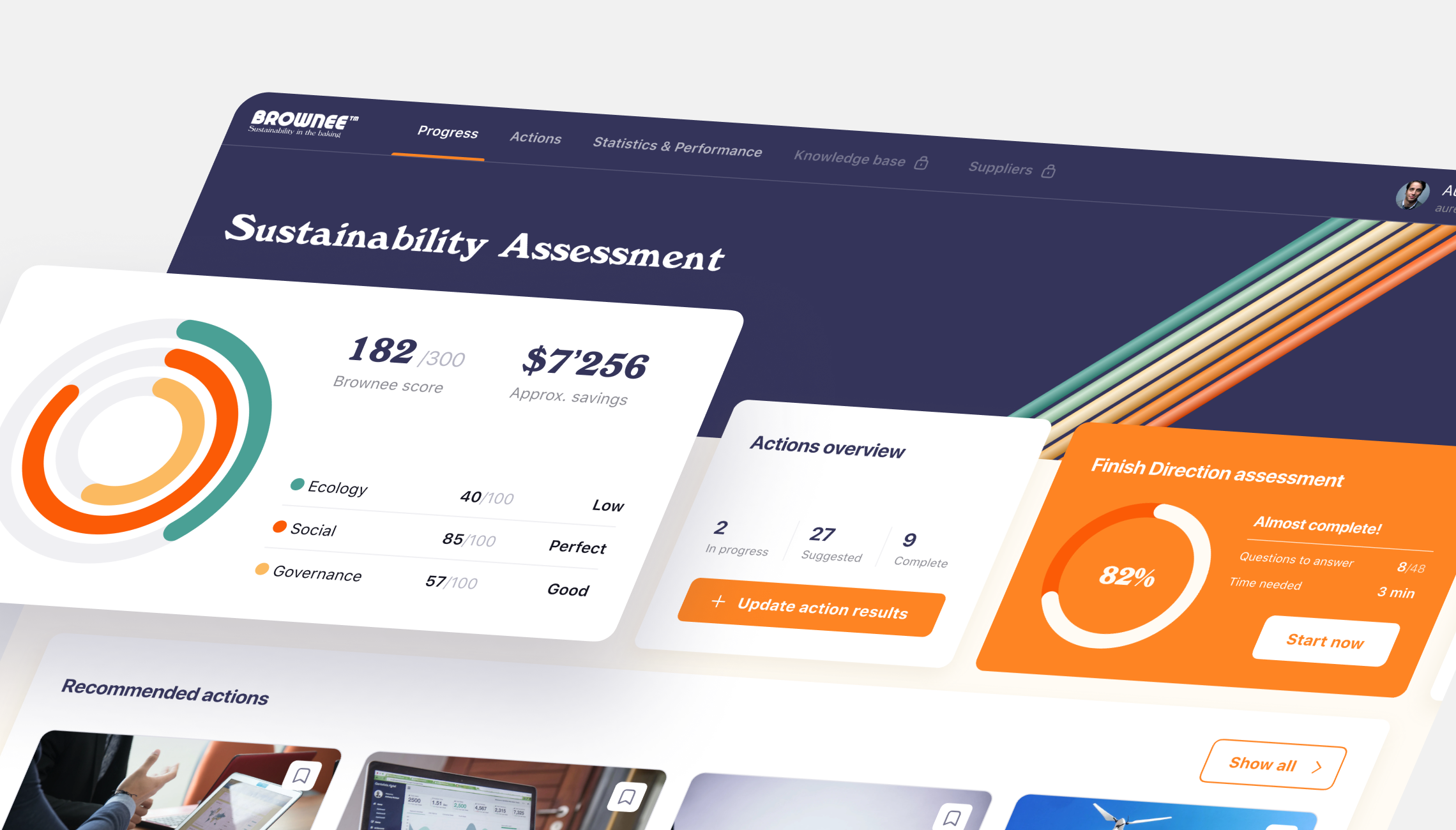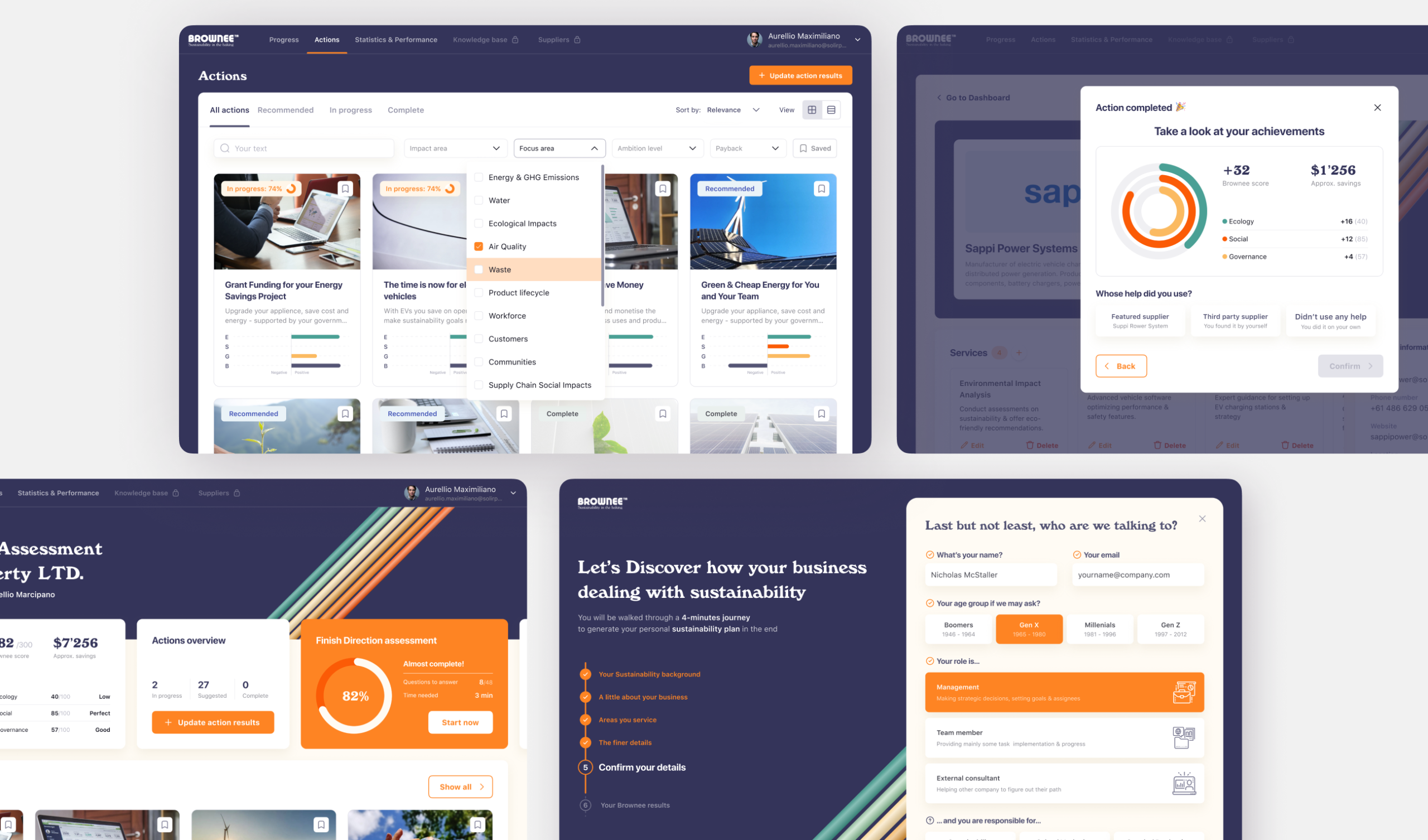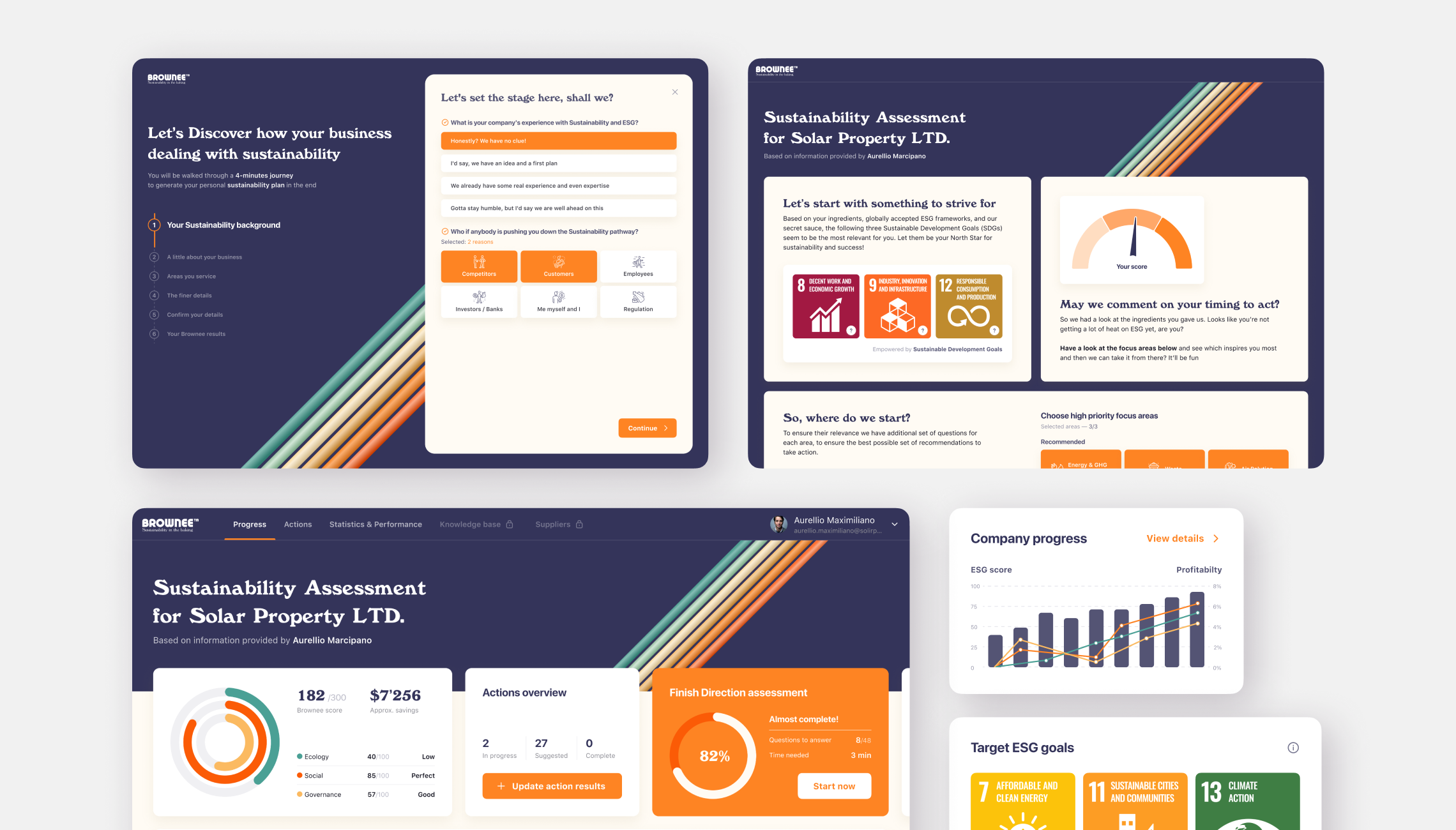 The primary challenge for Brownee was overcoming the "intent-action gap" in corporate sustainability. Companies often have goals but lack the tools to implement them effectively. We designed a dual-layered experience that begins with a deep Initial Assessment, mapping company data against Global Goals.