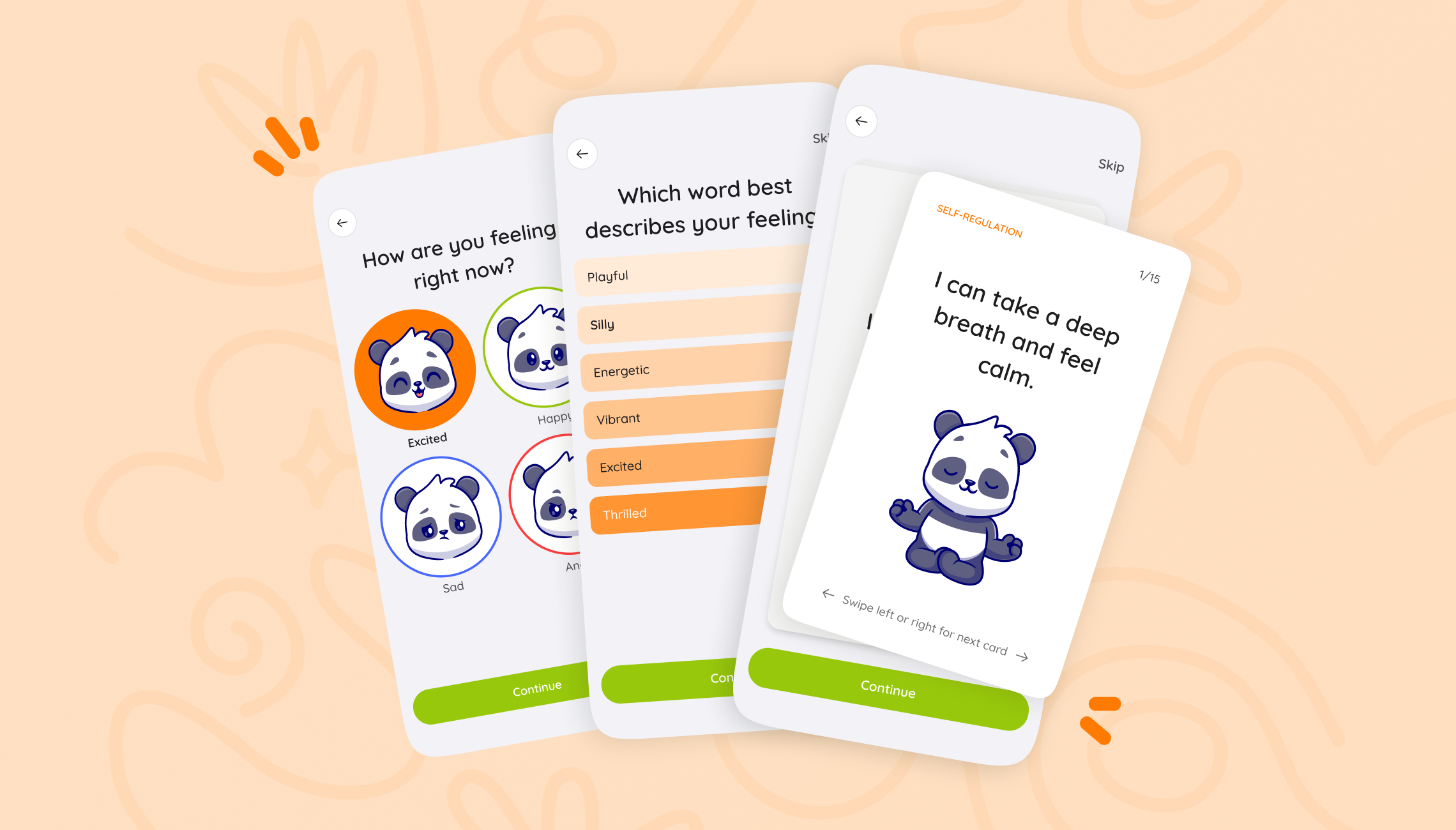 • A gamified emotional check-in flow for identifying feelings and their triggers.