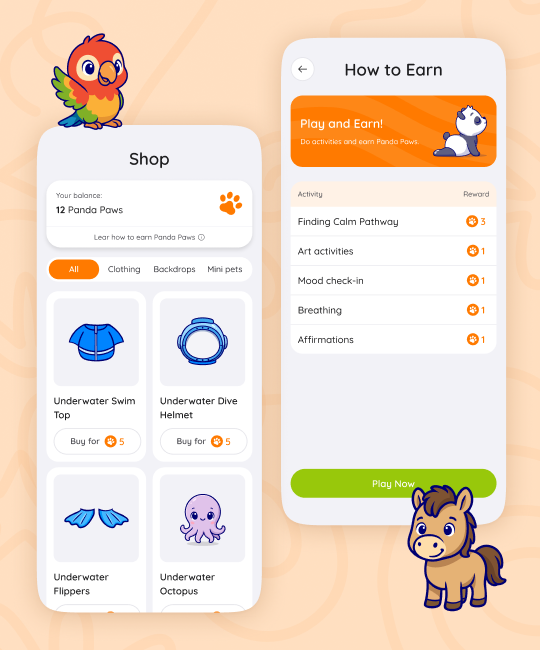 • A "Panda Paws" reward system with a virtual store for mascot customization.